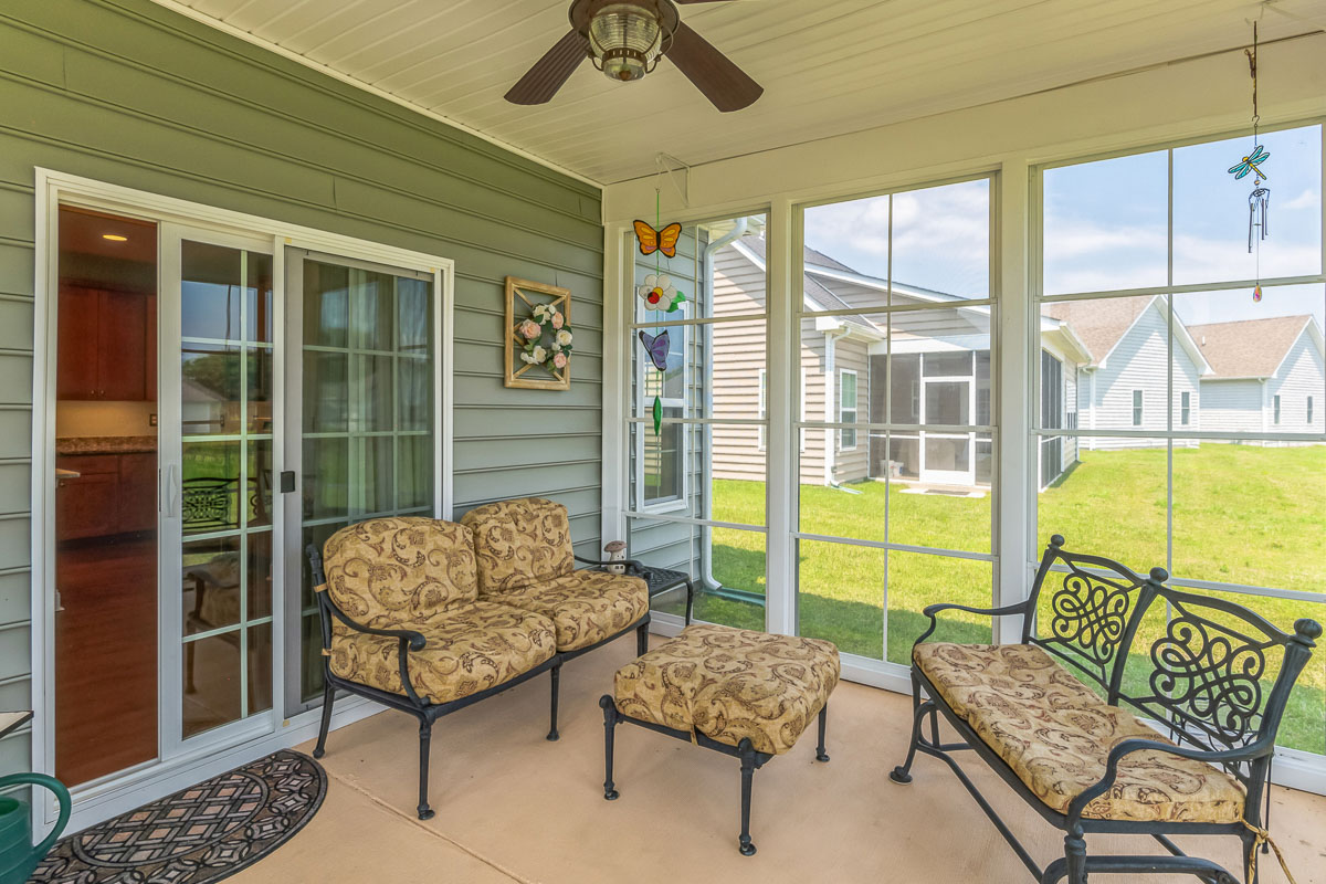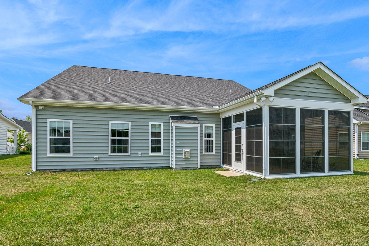 Introducing 7 Frankenberry Dr, a stunning Ranch-style home nestled in the serene community of The Village of Cinderberry in Georgetown. This near-new home, built in 2019, boasts 3 spacious bedrooms and 2 full bathrooms, spread across 1670 square feet of beautifully designed living space. Step inside and be greeted by the inviting front entry hall, with its warm neutral paint colors, modern two-panel doors, and wide-plank wood flooring. The open-concept layout flows seamlessly into the living room, where you’ll find recessed lighting, a natural gas fireplace, and tall windows bathing the space in natural light. The adjacent Kitchen is a culinary dream, featuring 42″ maple cabinetry, stainless appliances, pendant lighting, granite counters, and a center island with breakfast-bar seating perfect for casual dining and entertaining. The Dining area is conveniently located adjacent to the Kitchen, offering ample space for family gatherings and parties. And for a touch of outdoor living, the three-season room at the rear is a tranquil retreat, complete with pond views and the soothing sounds of fountains. This versatile space has been upgraded with the Eze-Breeze vinyl window system which allows the window panels to slide all the way up compactly for easy cross-breezes and seamless transitions between a fully enclosed or fully screened space. The primary bedroom is a true retreat, featuring a ceiling fan, a large walk-in closet with custom built-in drawers and shelving, and an upgraded primary bath with tile flooring, a tile shower w/ grab bar, frameless glass shower doors, and a spacious vanity with ample storage. The two remaining bedrooms are well-sized and offer plenty of closet space, while the hall bath features tile floors, a tub/shower combo, and modern nickel hardware. Additional highlights of this remarkable home include a convenient laundry/mud room with access to the oversized attached two-car garage, a wide concrete driveway for additional parking, and a plethora of upgrades such as a security system, high-end custom blinds throughout, reverse osmosis water filter, garage utility sink (rough-in), and irrigation system. The Village of Cinderberry community offers a wide range of amenities, including a clubhouse with an indoor swimming pool, exercise room, community library, activity rooms, and a large meeting room with kitchen access for private parties.